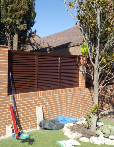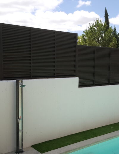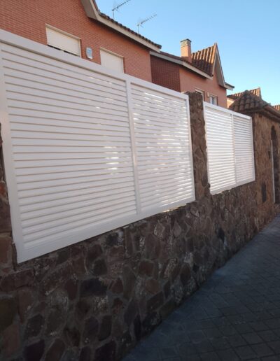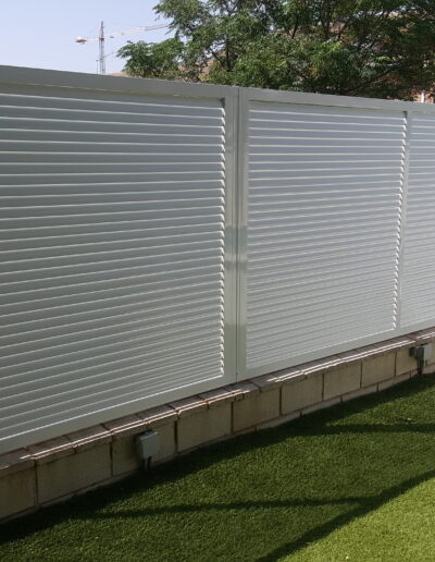 Las fabricamos tanto en hierro como en aluminio soldado, en ambos casos cubren perfectamente las necesidades de privacidad, siendo su composición chapa en ondas de 1.2 mm. Soldada a varillas verticales de 16 mm.